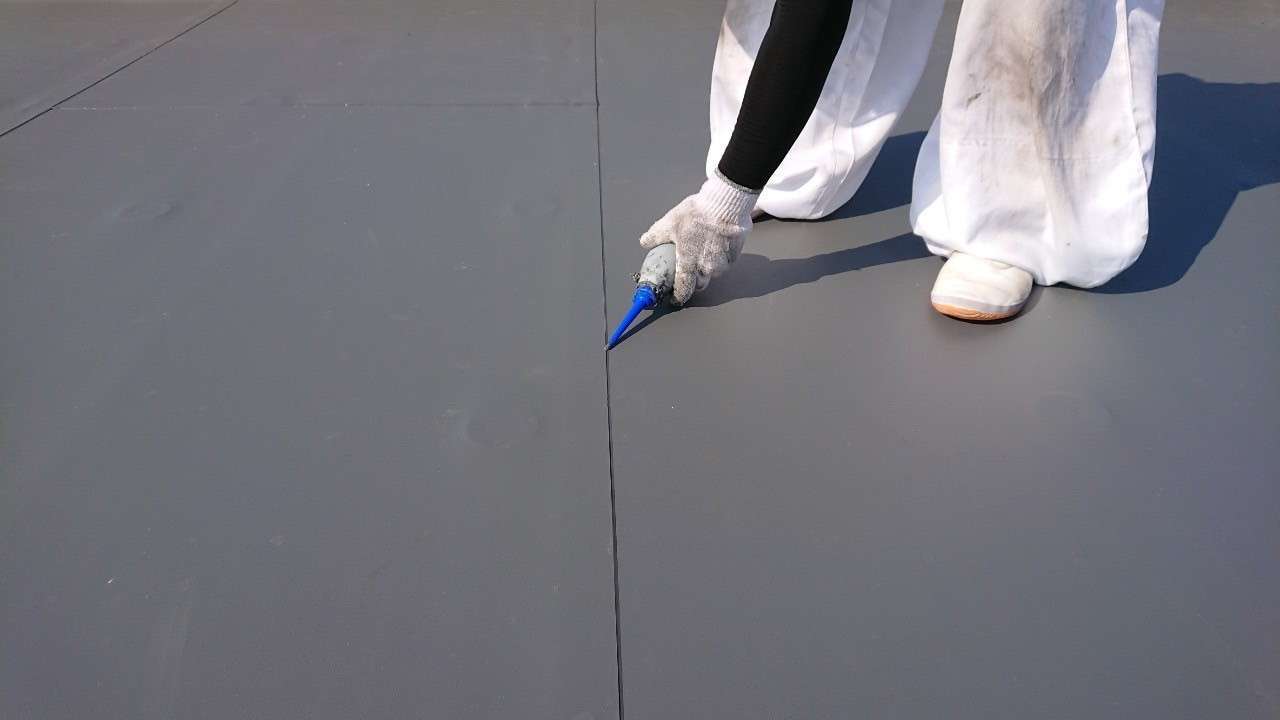 最後にジョイント部へ液状シール材を充填し、