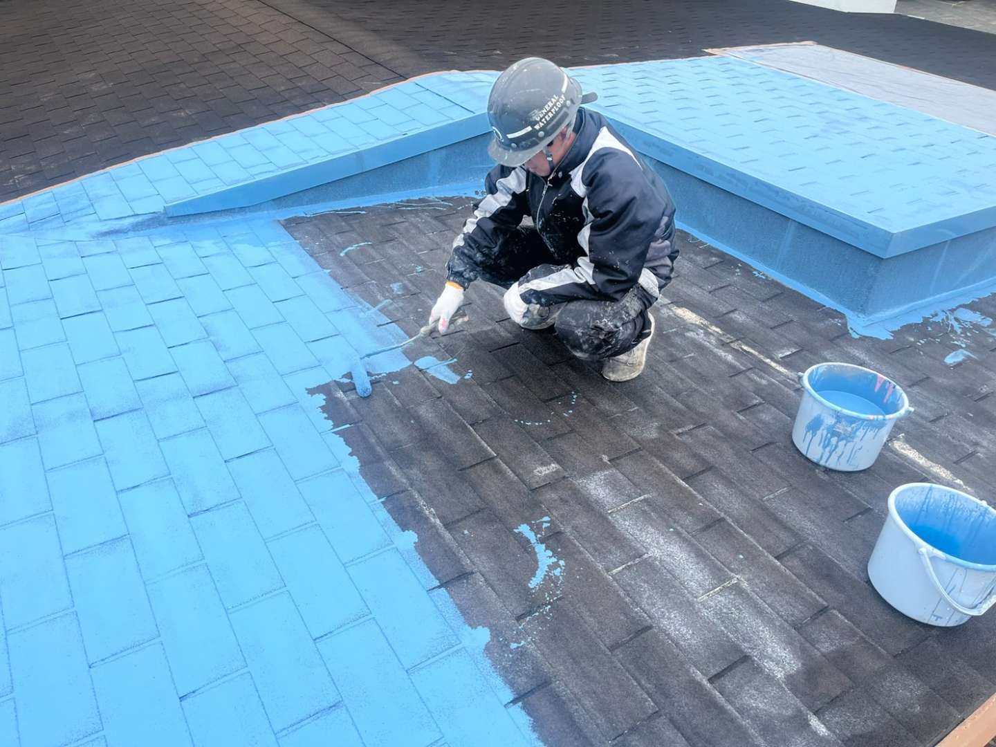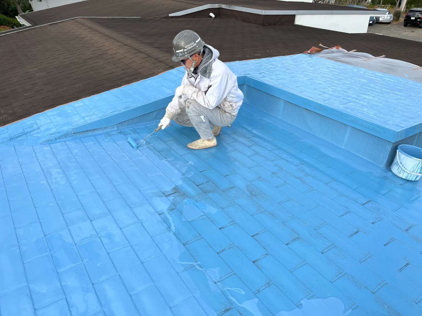 塗料系の防水材で主に屋上、バルコニー、廊下などなど